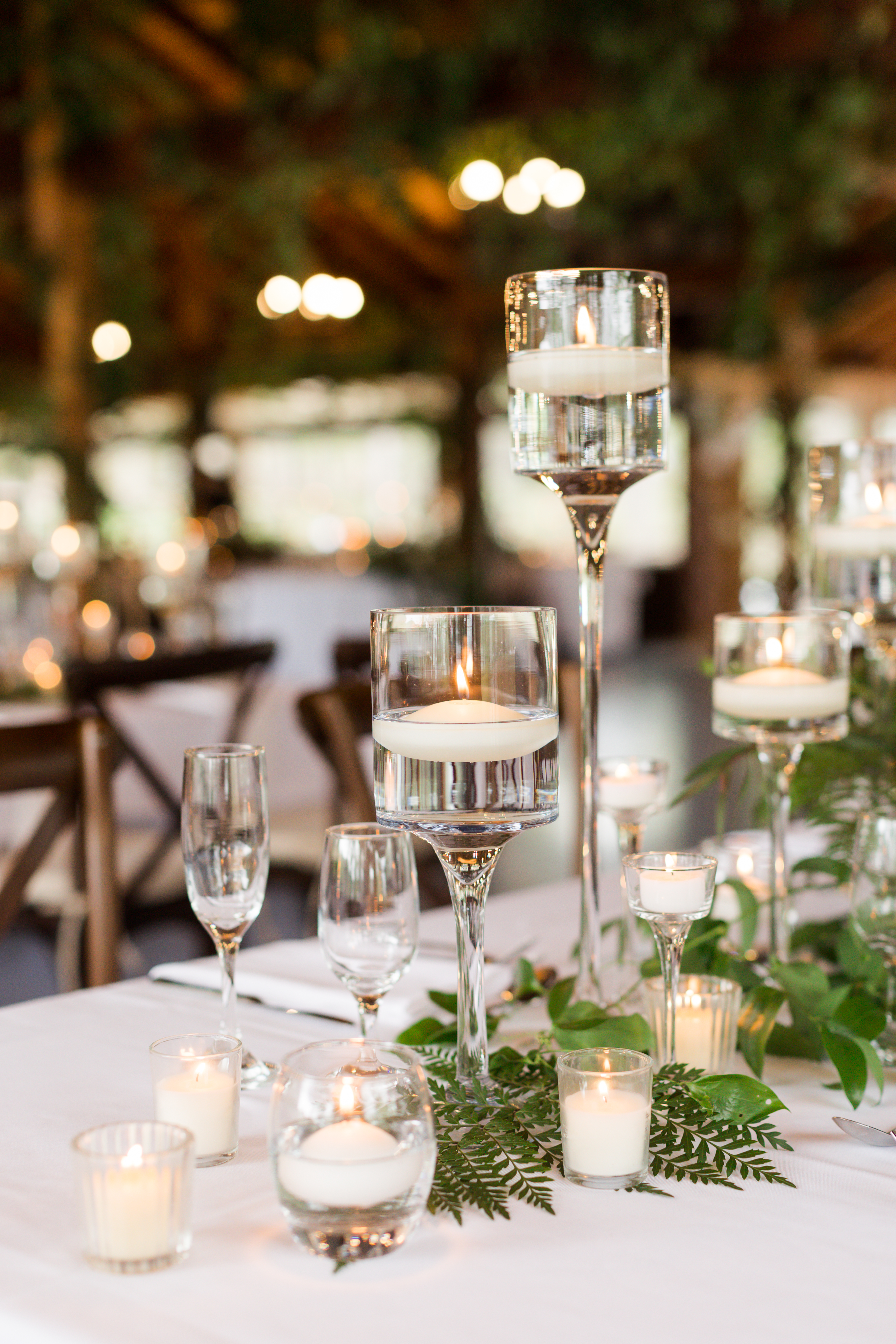 uplighting, string lights, candles