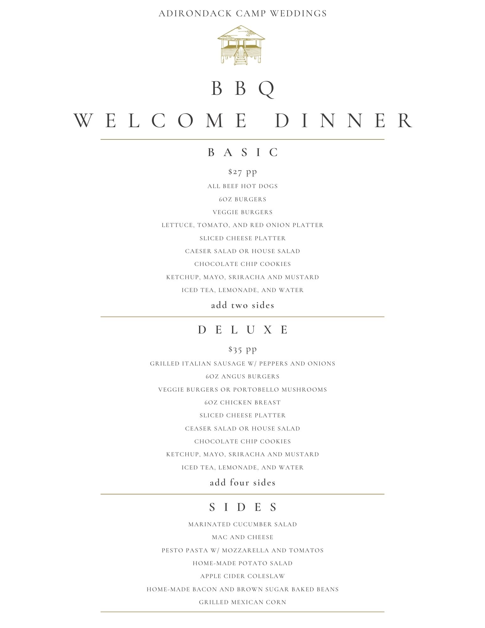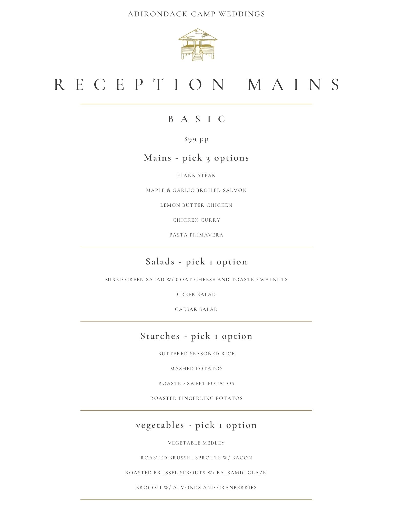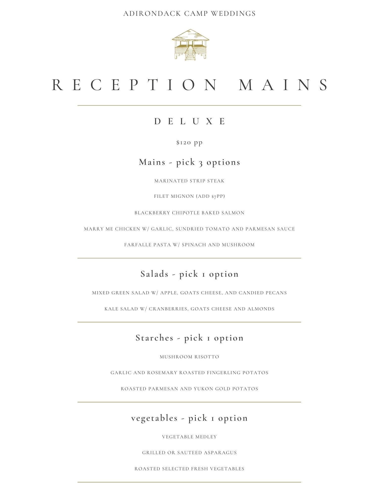 2025 Adirondack Wedding Menu
