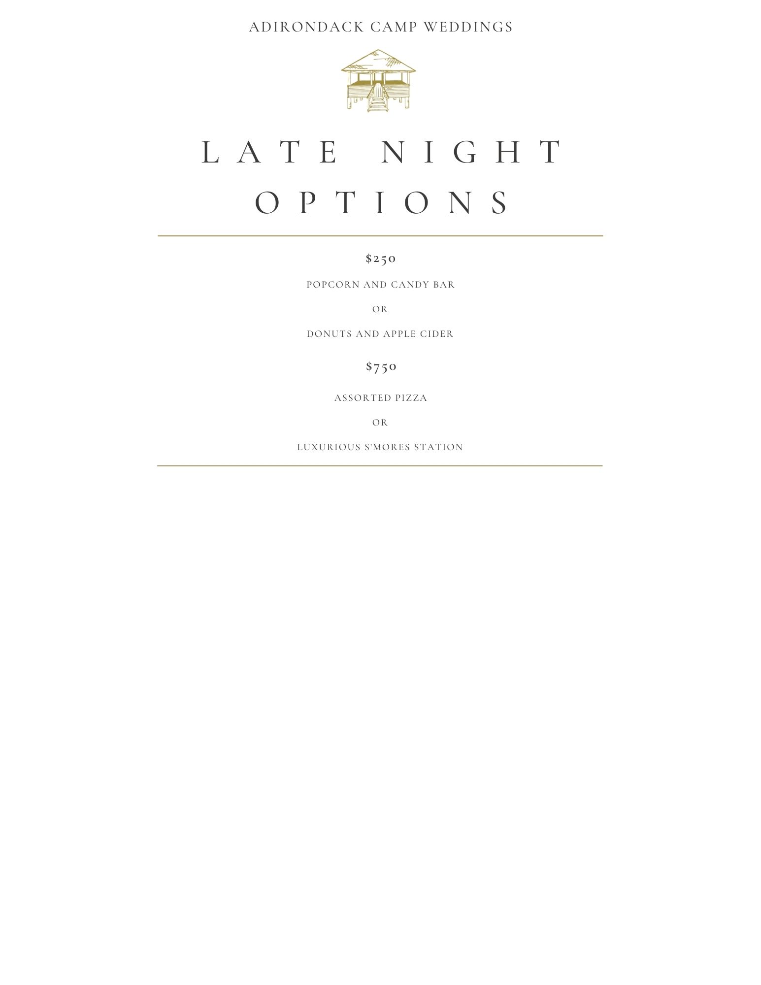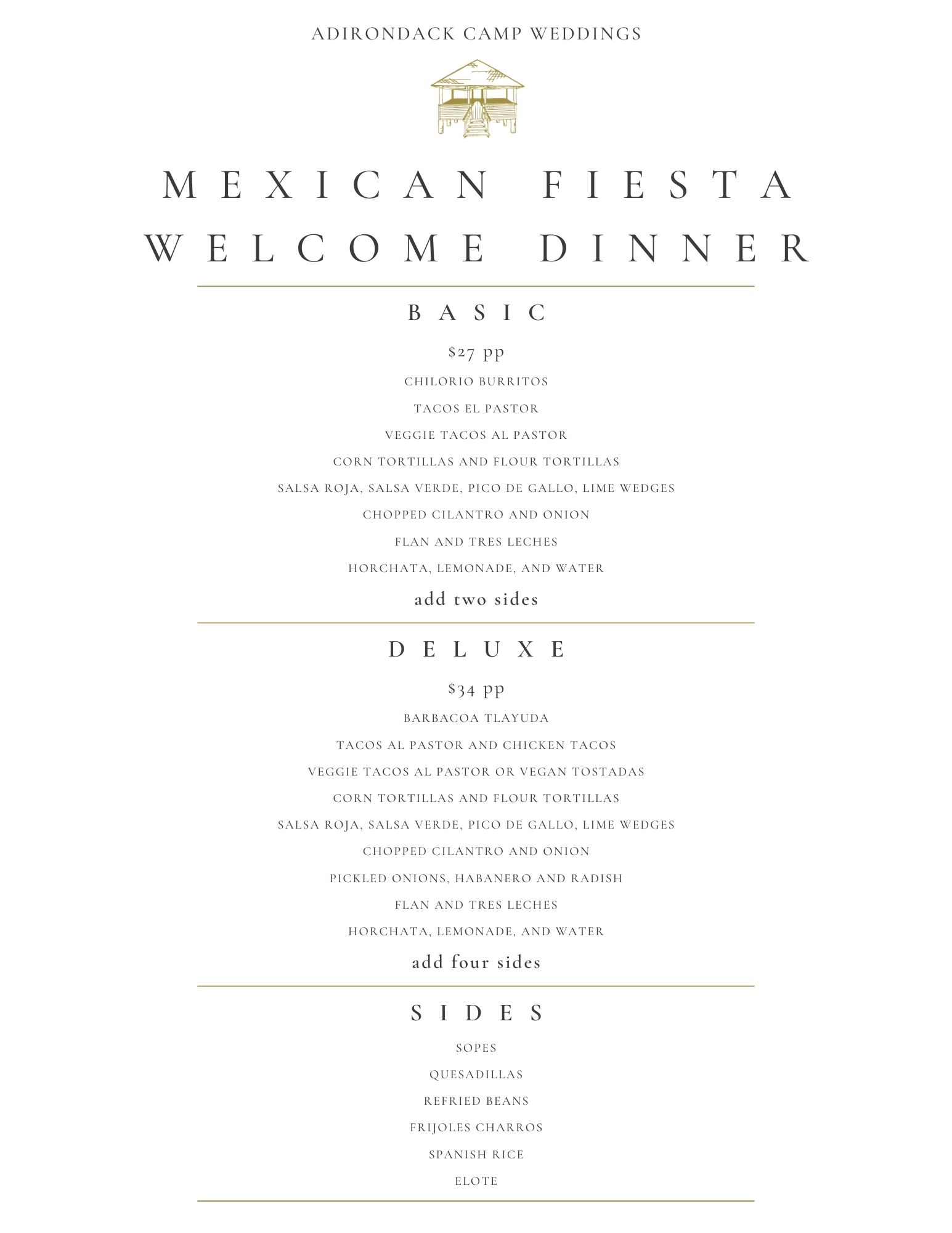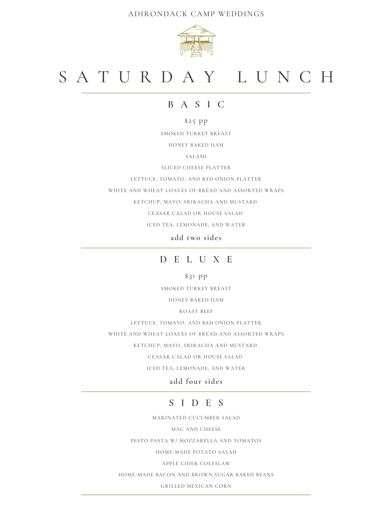 2025 Adirondack Wedding Menu