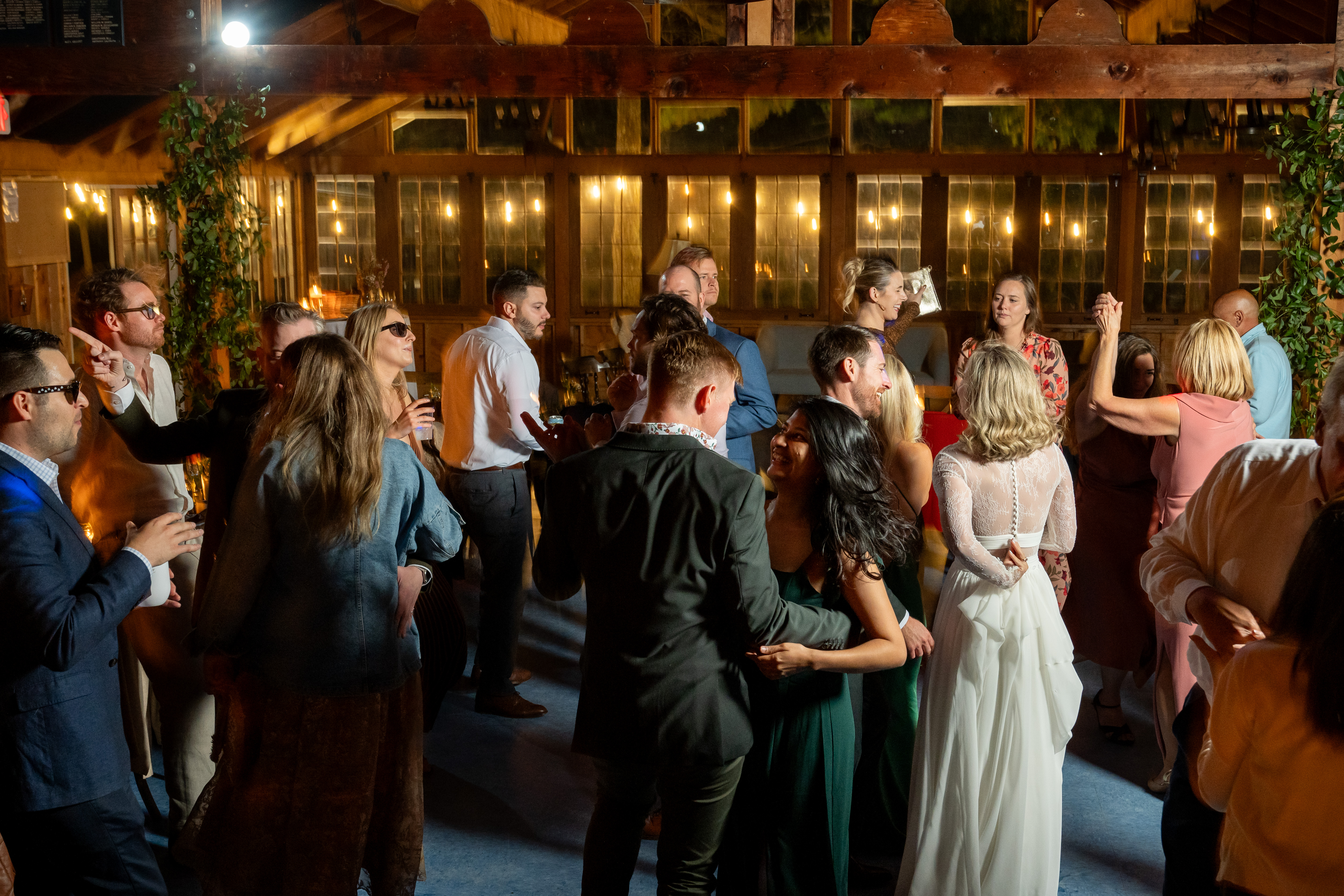 The property becomes entirely dedicated to the wedding weekend, allowing guests to stay onsite in cabins, enjoy the lake, and celebrate together for several days.